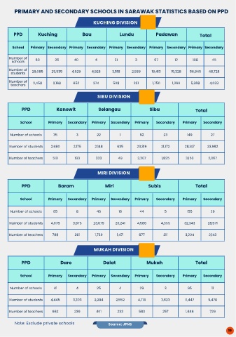 PRIMARY AND SECONDARY SCHOOLS IN SARAWAK STATISTICS BASED ON PPD
