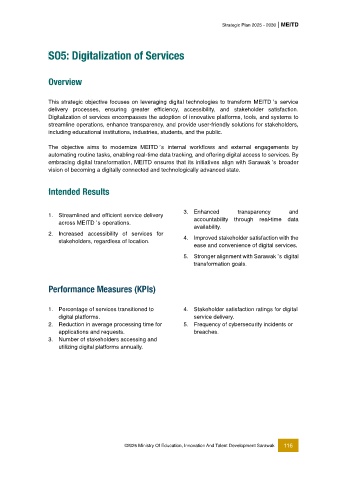 This strategic objective focuses on leveraging digital technologies to transform MEITD ’s service