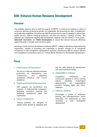 This strategic objective aims to build the capacity of MEITD ’s workforce by fostering a culture of