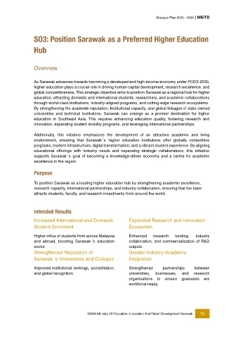 global competitiveness. This strategic objective aims to position Sarawak as a regional hub for higher