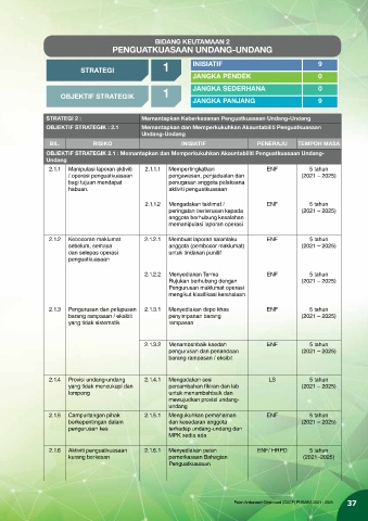 OBJEKTIF STRATEGIK 2.1 : Memantapkan dan Memperkukuhkan Akauntabiliti Penguatkuasaan Undang-