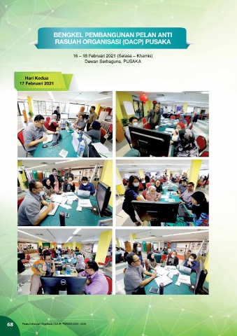 BENGKEL PEMBANGUNAN PELAN ANTI RASUAH ORGANISASI (OACP) PUSAKA 16 – 18 Februari 2021 (Selasa – Khamis) Dewan Serbaguna, PUSAKA Hari Kedua 17 Februari 2021 68 Pelan Antirasuah Organisasi (OACP) PUSAKA 2021 - 2025