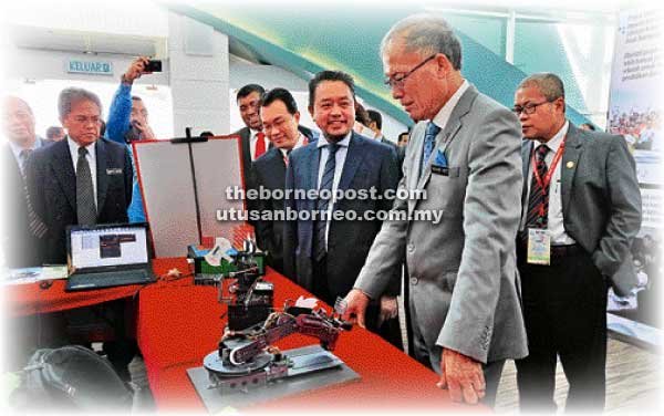 INOVATIF: Riot (kanan) diiringi Pengerusi PPKS Tan Sri Datuk Amar Abdul Aziz Husain (dua kanan) serta Hallman (tiga kanan) melawat pameran sempena Persidangan TVET Sedunia 2015 di BCCK, semalam.