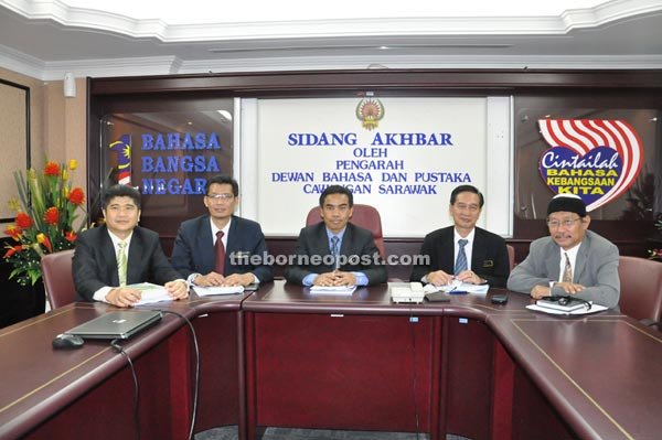 Dr Hazami (centre) at a press conference on state-level BBK 2014 at the state DBP office in Petra Jaya.